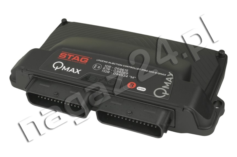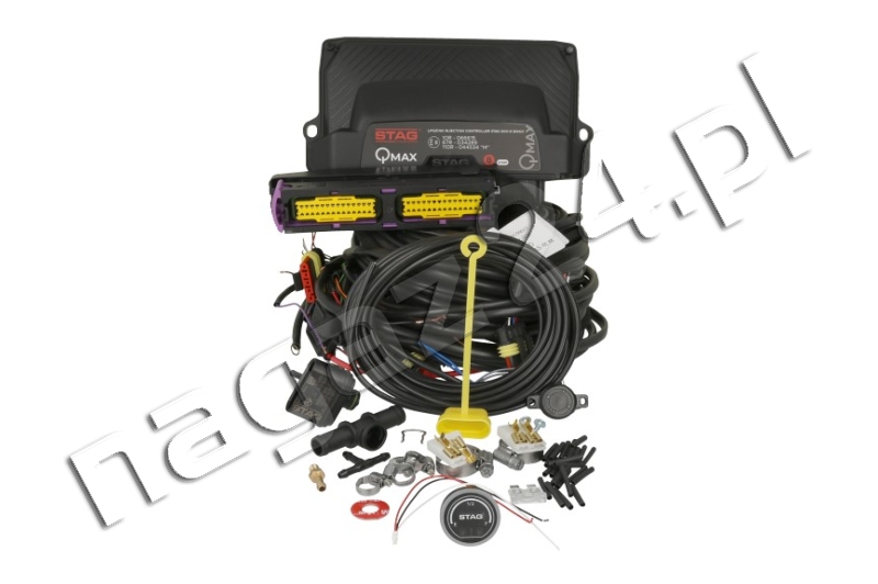 AC STAG 300-8 QMAX elektronika – zestaw elektroniki z okablowaniem uniwersalnej samochodowej instalacji gazowej IV generacji (sekwencyjnego wtrysku gazu w fazie lotnej) ze sterownikiem STAG 300-8 QMAX BASIC, umożliwiający konwersję na zasilanie LPG 8-cylindrowych silników z pośrednim wtryskiem benzyny.