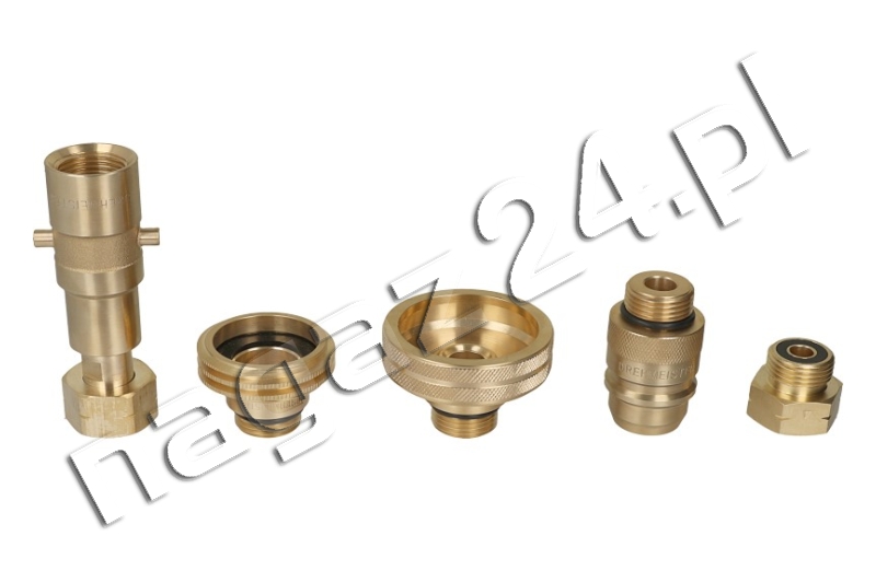 Adaptery, redukcje do tankowania LPG, przejścia tankujące W21,8L/G.12 do butli + etui – komplet zawiera adaptery umożliwiające podłączenie butli z lewoskrętnymi gwintami W21,8L z pistoletami do tankowania LPG współpracującymi z następującymi złączami: