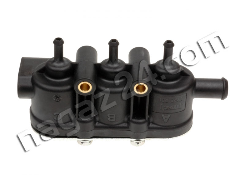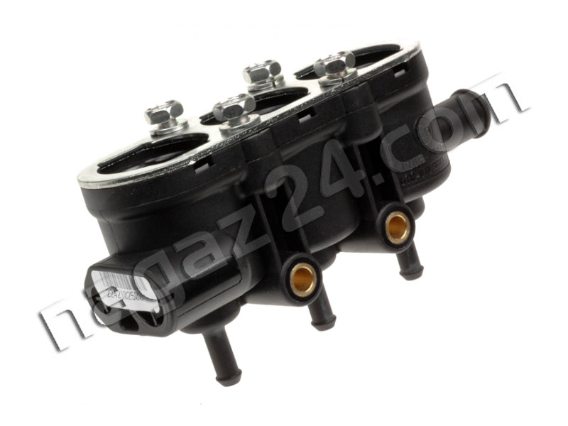 MED gas injector housing used in six-cylinder cars as housing for the second three-cylinder injection unit. Note: in this strip it is not possible to connect a pressure sensor, no socket for mounting. Allows you to assemble injectors into a unit to connect the supply line and wires to individual cylinders. Used both in LPG and METHANE gas injection systems. It has approvals for both gases E13-67R-010233 and E13-110R-000057.