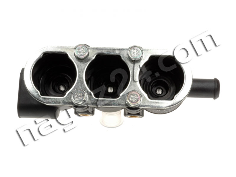 Spare part for:Plastic body for 3 cylinders, with a metal blocking element for the injectors from above and with four screws for the blocking element.