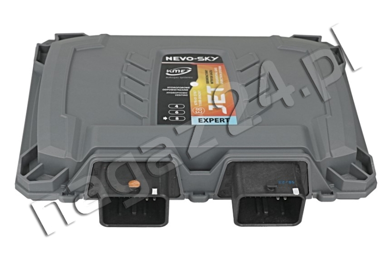 Centrala, sterownik KME NEVO-SKY JET EXPERT 8 CYL – sterownik NEVO-SKY JET EXPERT 8 CYL łódzkiej firmy KME samochodowej instalacji gazowej IV generacji (sekwencyjnego wtrysku gazu w fazie lotnej) przeznaczonej do konwersji na zasilanie LPG samochodów z 8-cylindrowymi silnikami z pośrednim wtryskiem benzyny.