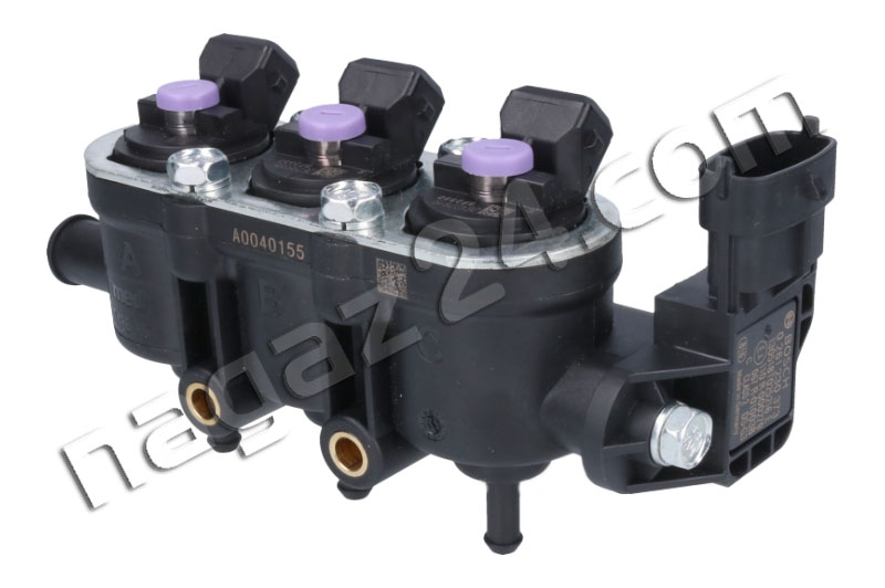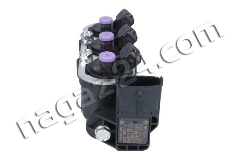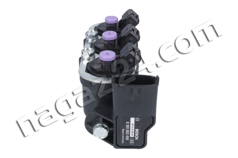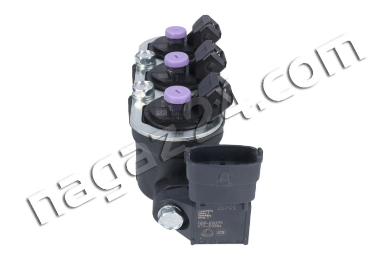 Med injector rail. 3 cyl. with injectors marked in purple. A Bosch pressure sensor is included.