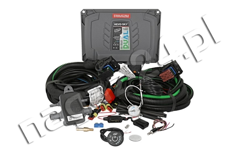KME NEVO-SKY DUAL 4 cyl. DIRECT (DI + MPI) RL elektronika DG7 activ – zawiera wszystkie komponenty elektroniczne niezbędne do adaptacji na zasilanie gazowe silników 3- lub 4-cylindrowych z dualnym, podwójnym (bezpośrednim i pośrednim) wtryskiem benzyny. W tego rodzaju silnikach w każdej komorze spalania znajduje się wtryskiwacz benzynowy a w kanale dolotowym każdego z cylindrów pracuje jeszcze wtryskiwacz realizujący pośredni wtrysk benzyny.