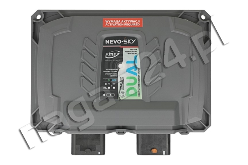 KME NEVO-SKY DUAL 6 cyl./8 cyl. DIRECT (DI + MPI) Activate RL/RL elektronika DG7 RGB – zawiera wszystkie komponenty elektroniczne niezbędne do adaptacji na zasilanie gazowe silników 6- lub 8-cylindrowych z dualnym, podwójnym (bezpośrednim i pośrednim) wtryskiem benzyny. W tego rodzaju silnikach w każdej komorze spalania znajduje się wtryskiwacz benzynowy a w kanale dolotowym każdego z cylindrów pracuje jeszcze wtryskiwacz realizujący pośredni wtrysk benzyny.