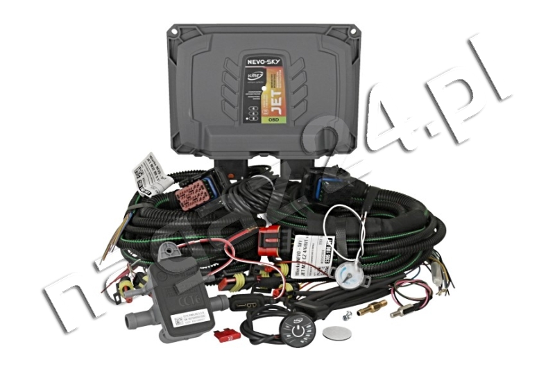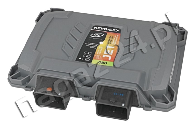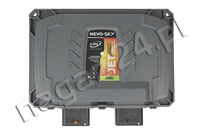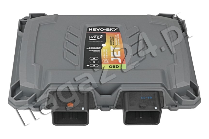 KME NEVO-SKY JET OBD 8 cylindrów elektronika DG7 5,5 Bar – uniwersalny zestaw montażowy elektroniki samochodowej instalacji gazowej IV generacji (sekwencyjnego wtrysku LPG w fazie lotnej) NEVO-SKY JET OBD firmy KME, przeznaczony do konwersji na zasilanie LPG samochodów wyposażonych w 3- i 4-cylindrowe jednostki napędowe z pośrednim wtryskiem benzyny. Sterownik NEVO-SKY JET OBD ma możlwość współpracy z układem OBD samochodu.