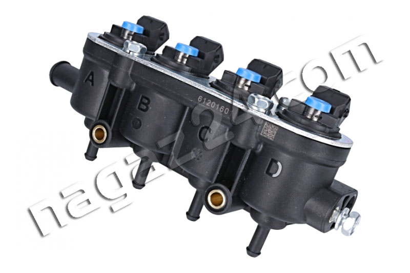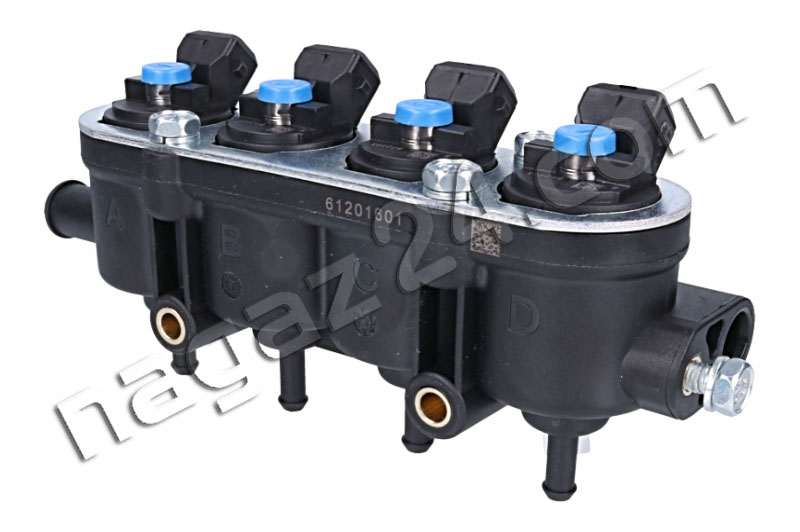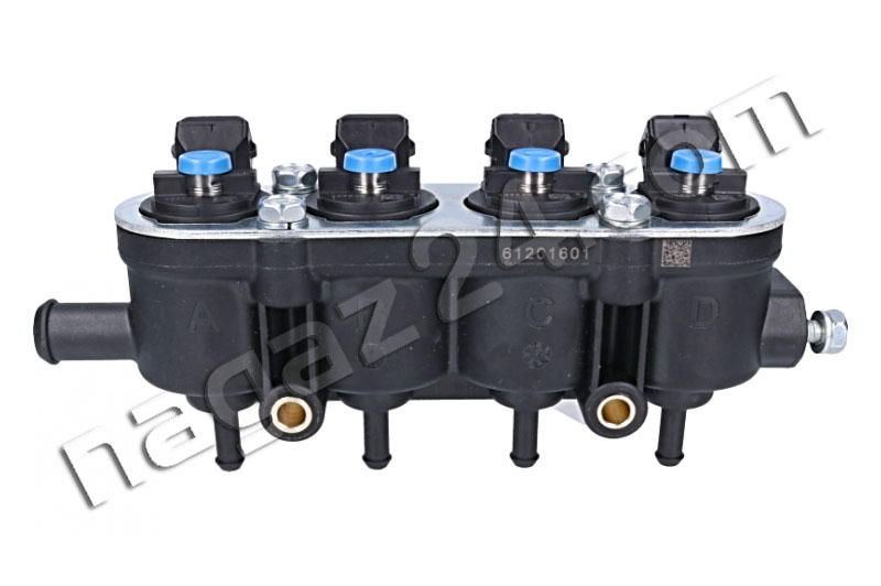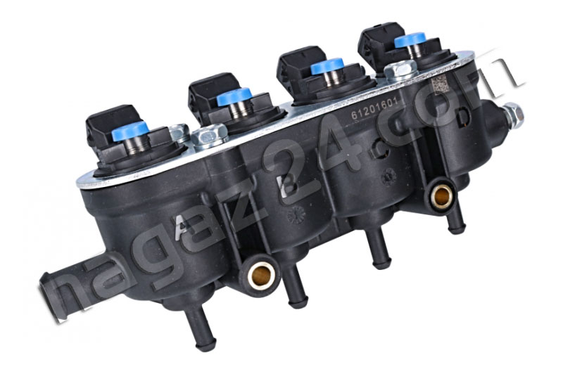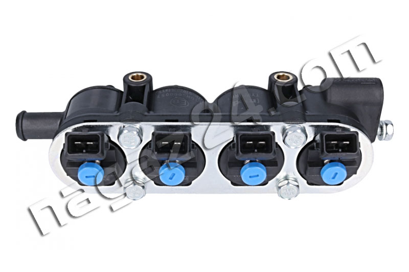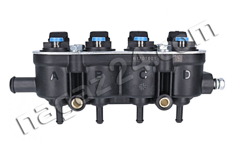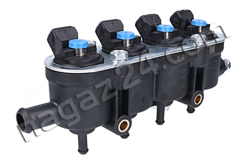 MED injection rail, 4-cylinder, blue, without sensor - this is a new version of black 4-hole injectors. The new injectors are 12 holes. They improve the linearity of the flow, are more resistant to the pulsation of the measured LPG dose and to the deposition of pollutants.