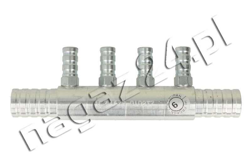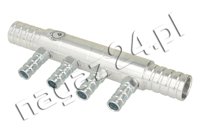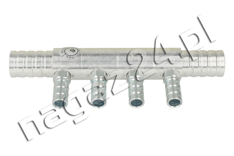 Listwa rozdzielająca, rozdzielacz wtryskiwaczy 4 cylindry 6/12x2 metalowy – rozdziela strumień fazy lotnej LPG napływający wężem z reduktora-parownika do pojedynczych wtryskiwaczy gazowych, dawkujących paliwo gazowe do kanałów dolotowych poszczególnych cylindrów silnika dostosowanego do zasilania gazem płynnym.