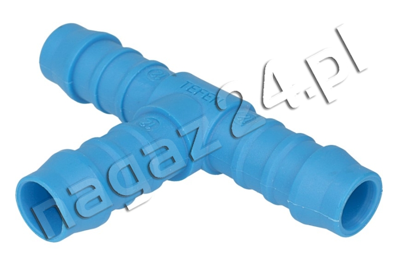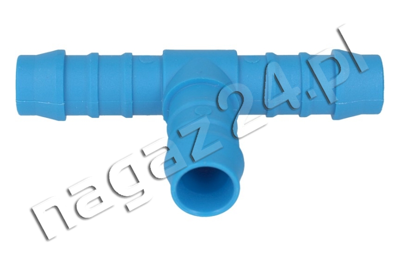 Trójnik T 12 x 12 x 12 mm plastik niebieski – za pośrednictwem trójników, do reduktora, a właściwe jego części zwanej parownikiem, dostarczana jest gorąca ciecz chłodząca, której energia cieplna intensyfikuje przemianę fazy ciekłej na fazę lotną LPG zapewniając reduktorowi odpowiednią wydajność, która ma na celu zaspokojenie zapotrzebowania na paliwo silnika poddanego konwersji na zasilanie gazem płynnym (LPG).