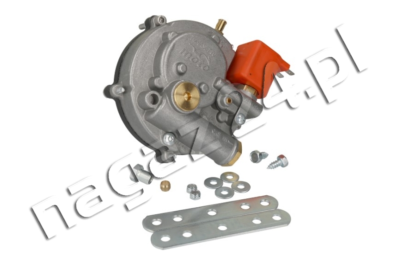 The set includes: AT10 moto reducer with an integrated filter (E8-67R-01 4684) diameter of the gas outlet connector 7 millimeters - 1 pc., Flat bar for mounting (10 cm x 1.5 cm, five holes for the M6 screw) - 1 pc. , Wide-flange washer (M5) - 2 pcs., Nut (M5) - 2 pcs., "10" sheet metal screw - 2 pcs., Sealing screw for Cu fi6 cable - 1 pc., Barrel Cu fi6 - 1 pc.
